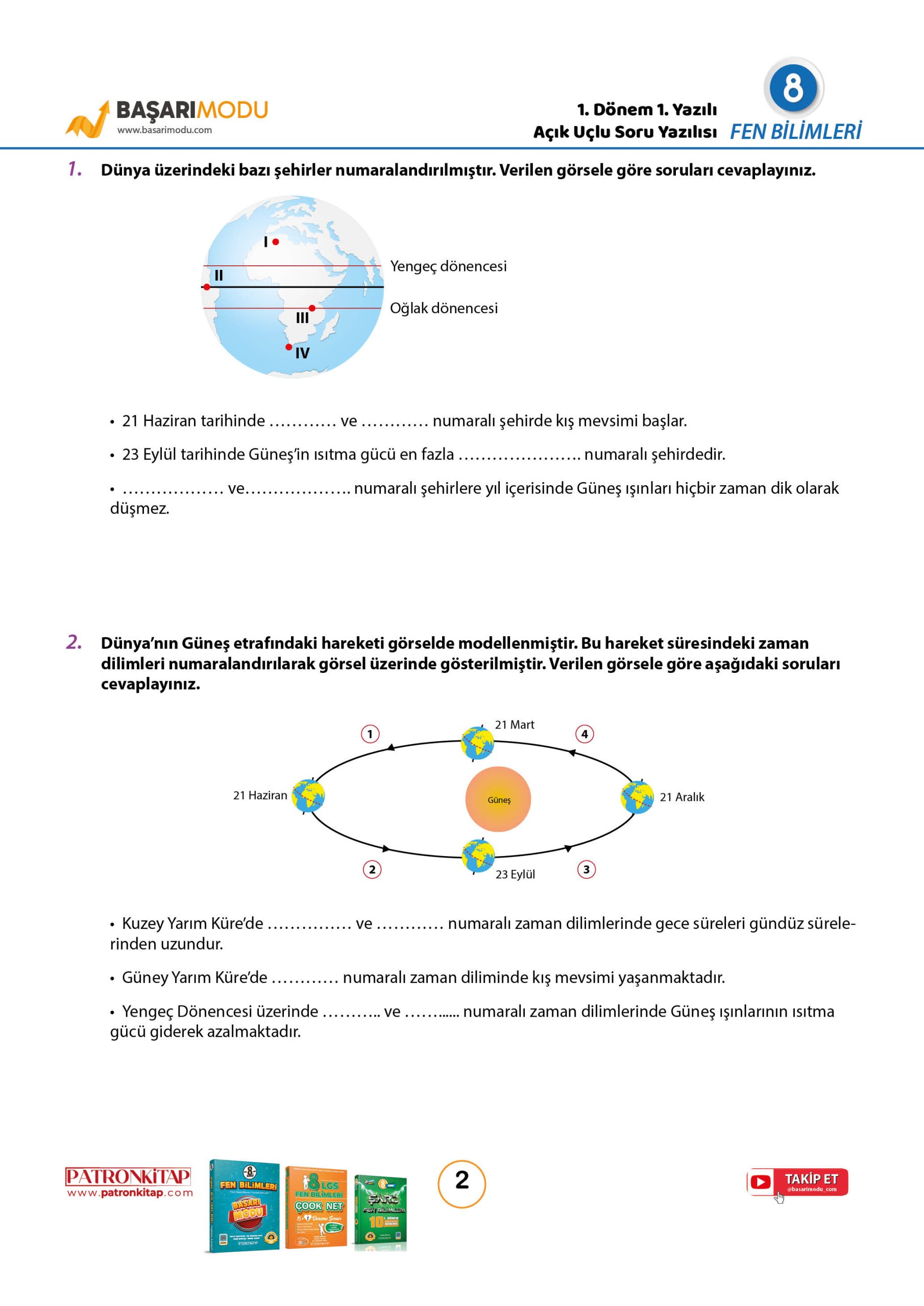 8. Sınıf öğrencilerinin fen bilimleri açık uçlu yazılı sınavlarına çalışabilmesi için yazılı örneğimizi indirebilirsiniz. MEB yeni sınav sistemi açık uçlu sorulardan oluşan yazılı kağıdı kazanımlara uygun olarak hazırlanmıştır. LGS öğrencilerimize yardımcı olabilmek adına bu güzel çalışmanın cevaplarını aşağıdaki linkten ulaşabilirsiniz.