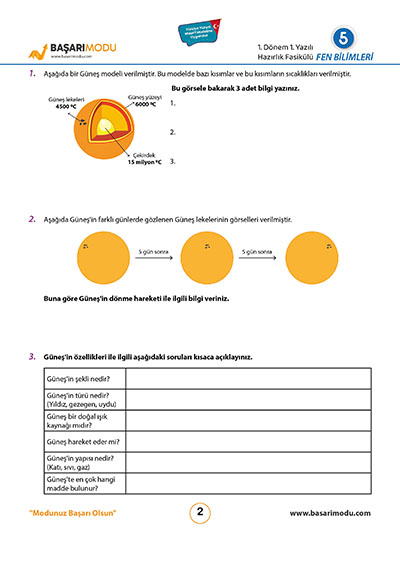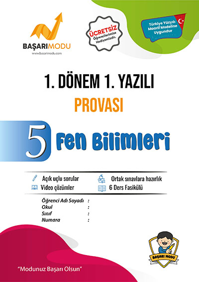Milli Eğitim Bakanlığının 2024/25 eğitim öğretim yılı Türkiye yüzyılı maarif modeline göre hazırlanmış yazılı sorularını indirebilirsiniz. Başarı modu olarak yazılı sınavlarına hazırlanmanız ve başarınızı yükseltmeniz için 5. Sınıf fen bilimleri soruları hazırladık. Fen bilimleri soruları açık uçlu sorular şeklinde sizlere yazılı sınavı deneyimi yaşatacaktır.
